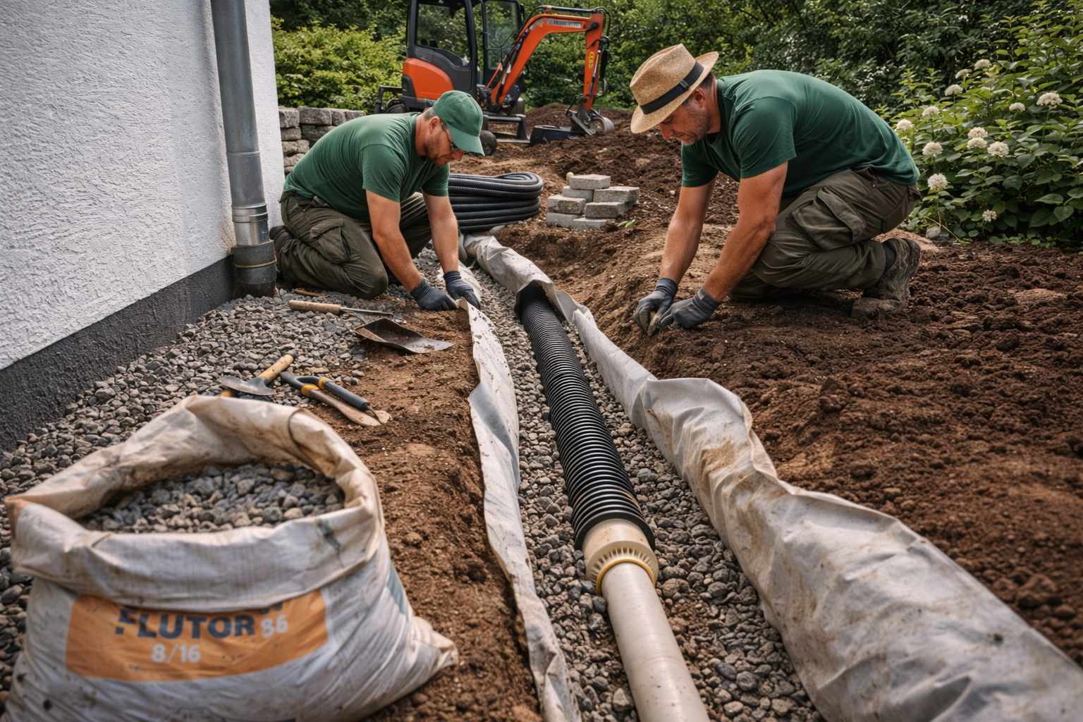 Regenwasser muss weg. Wir sorgen für funktionierende Abläufe, Drainagen und Gefälle.