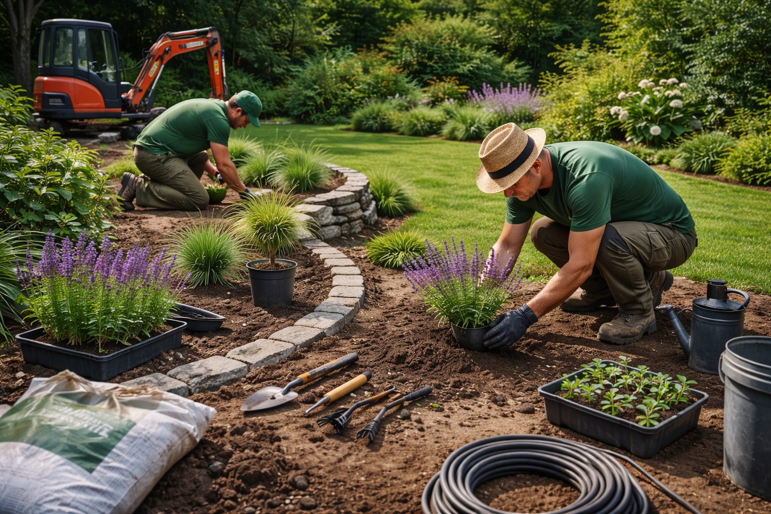 Wir planen und bauen neue Gärten: Rasenflächen, Beete, Wege und Terrassen – sauber umgesetzt.